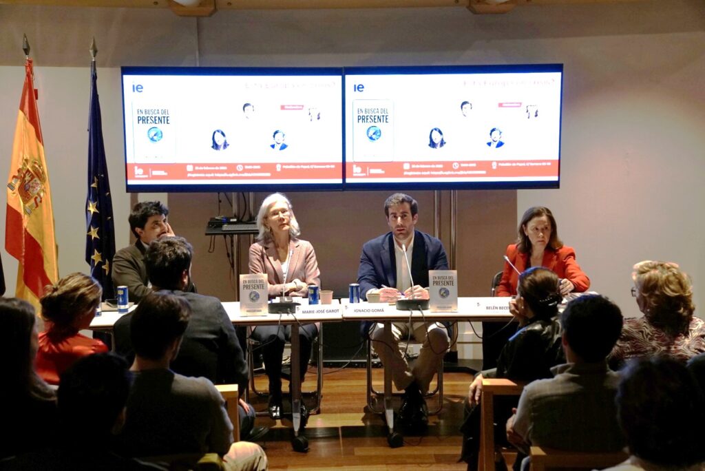 Ignacio Gomá Garcés, author of the book “In Search of the Present” and Public Affairs Partner at Kreab Spain; Belén Becerril Atienza, Professor of Public International Law at CEU San Pablo University and Director of International Relations; and Toni Roldán Monés, Assistant Professor of Public Policy at IE University.