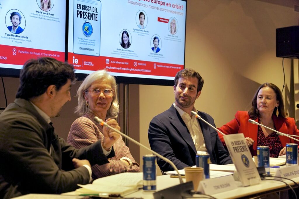 On February 25, 2026, the IE Center for European Studies organized a debate entitled: “Is Europe in Crisis? Diagnosis and Reasons for Hope.” The event was moderated by Marie-José Garot, Professor at IE Law School and Director of the IE Center for European Studies.